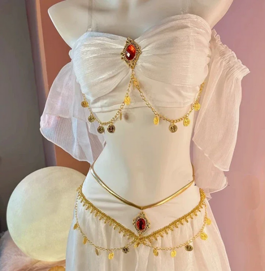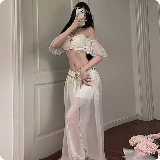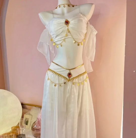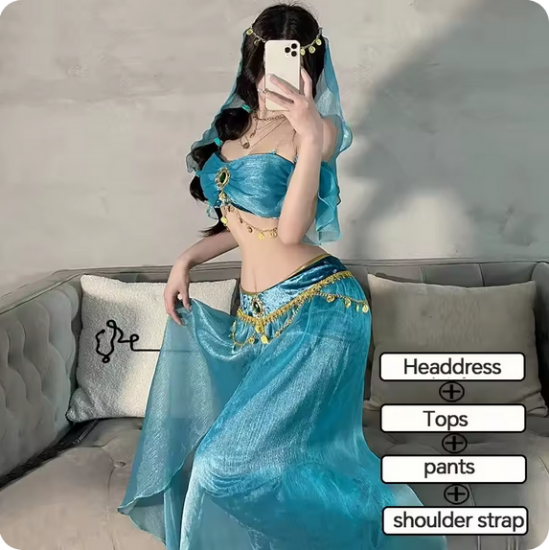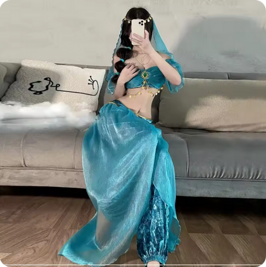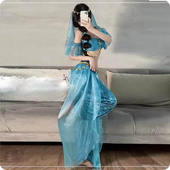 ジャスミン風 コスプレ衣装 フルセット ホワイト/ブルー選択可 ベリーダンス風 アラジン衣装 ダンス ハロウィン 撮影会